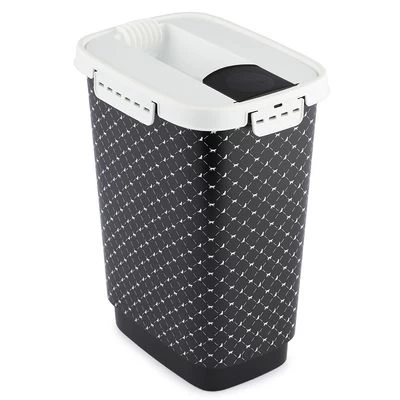 El contenedor de pienso Rotho MyPet Cody con cierre hermético y solapa integrada facilita la dosificación del pienso con precisión a la hora de servir en el comedero. Tiene una capacidad de 10 litros y está hecho con plástico libre de bisfenol A.