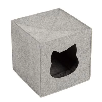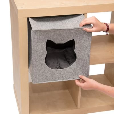 Esta cueva de fieltro es ideal para ofrecer a tu gato un lugar de confort en casa. Al ser plegable ahorrarás espacio y podrás ponerla donde mejor se adapte. Gracias a su forma compacta de cubo, se puede colocar por separado o en los modelos de las estanterías Kallax y Expedit de IKEA.