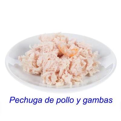 - 24 x 70 g Pechuga de pollo y gambas: sabrosa pechuga de pollo con gambas