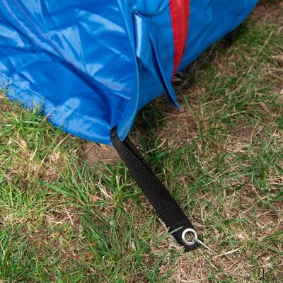 El túnel flexible Agility Fun & Sport incluye ganchos de metal para poderlo fijar con seguridad en el jardín o en la hierba. Además, viene en una bolsa de nailon para facilitar su transporte.